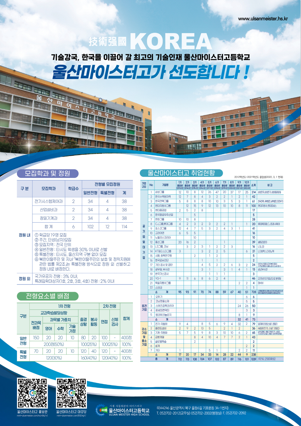 울산마이스터고등학교는 기계-자동화 분야 마이스터고등학교로서 2023학년도 신입생 모집을 다음과 같이 실시합니다.